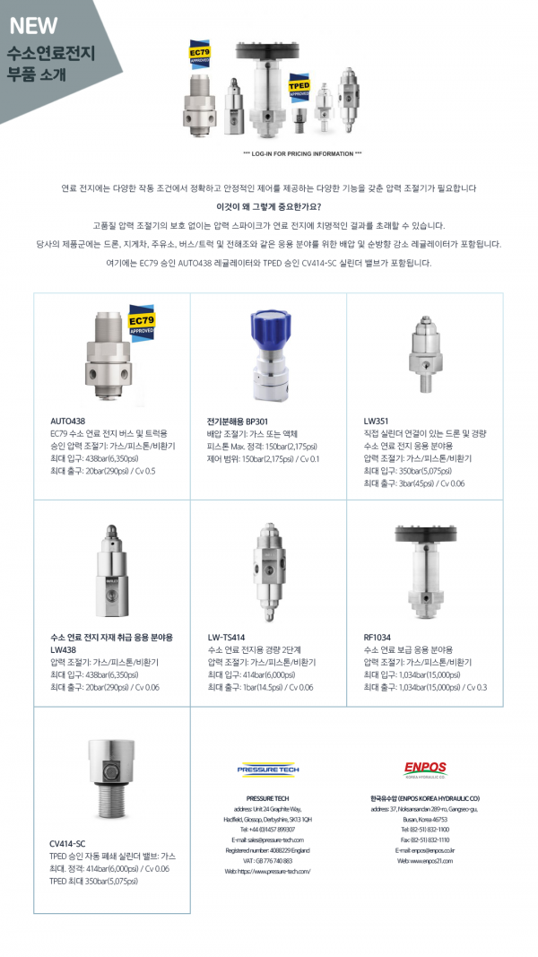 Pressure tech 수소연료전지 부품 소개 페이지 정보 글쓴이 ENPOS 작성일23-04-17 10:46 조회3,394 댓글0 관련링크 Prev Next 목록 본문 해외업체 Pressure tech의 수소연료전지 부품 소개 이미지입니다. Prev Next 목록